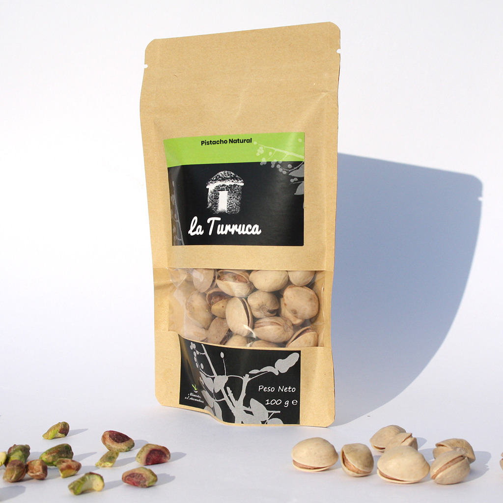 Pistacho de buen calibre con cáscara blanca y fruto natural (sin tostar), cobertura externa delicada e interior suave, agradable y ligero al paladar. Disponible con un toque de sal o sin sal. Formato en sobre 100% reciclable, ideal para transporte cómodo, compartir o detalle para regalar en comidas con amigos y familiares. El envase perfecto para aperitivos y picoteo acompañándolo con quesos, otros frutos secos e incluso con carnes y pescados.